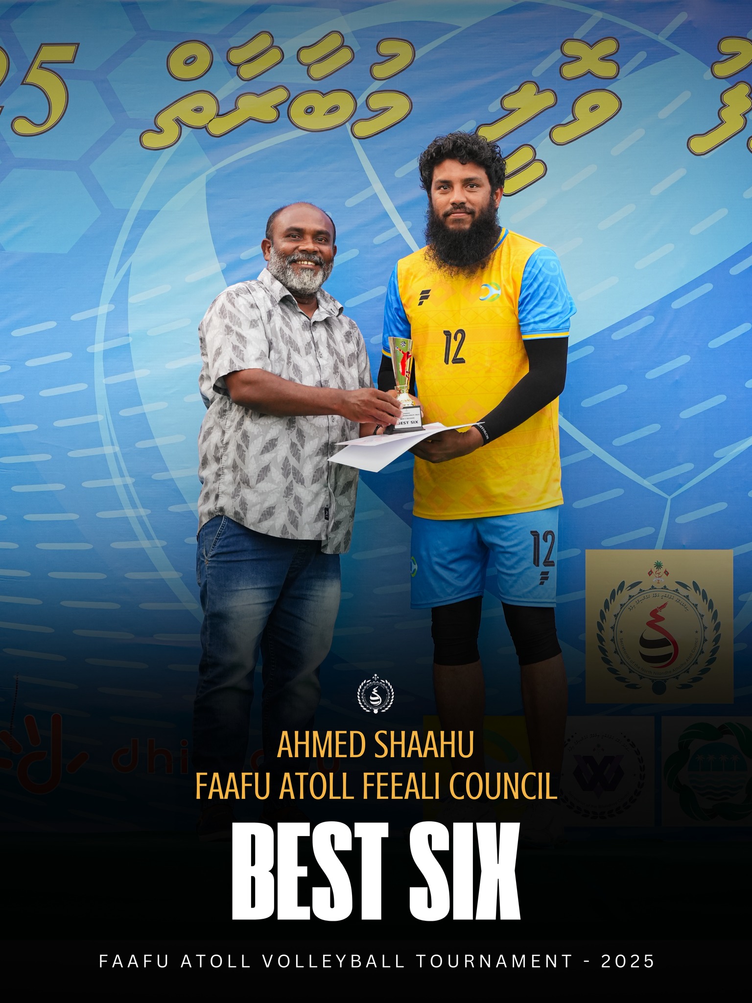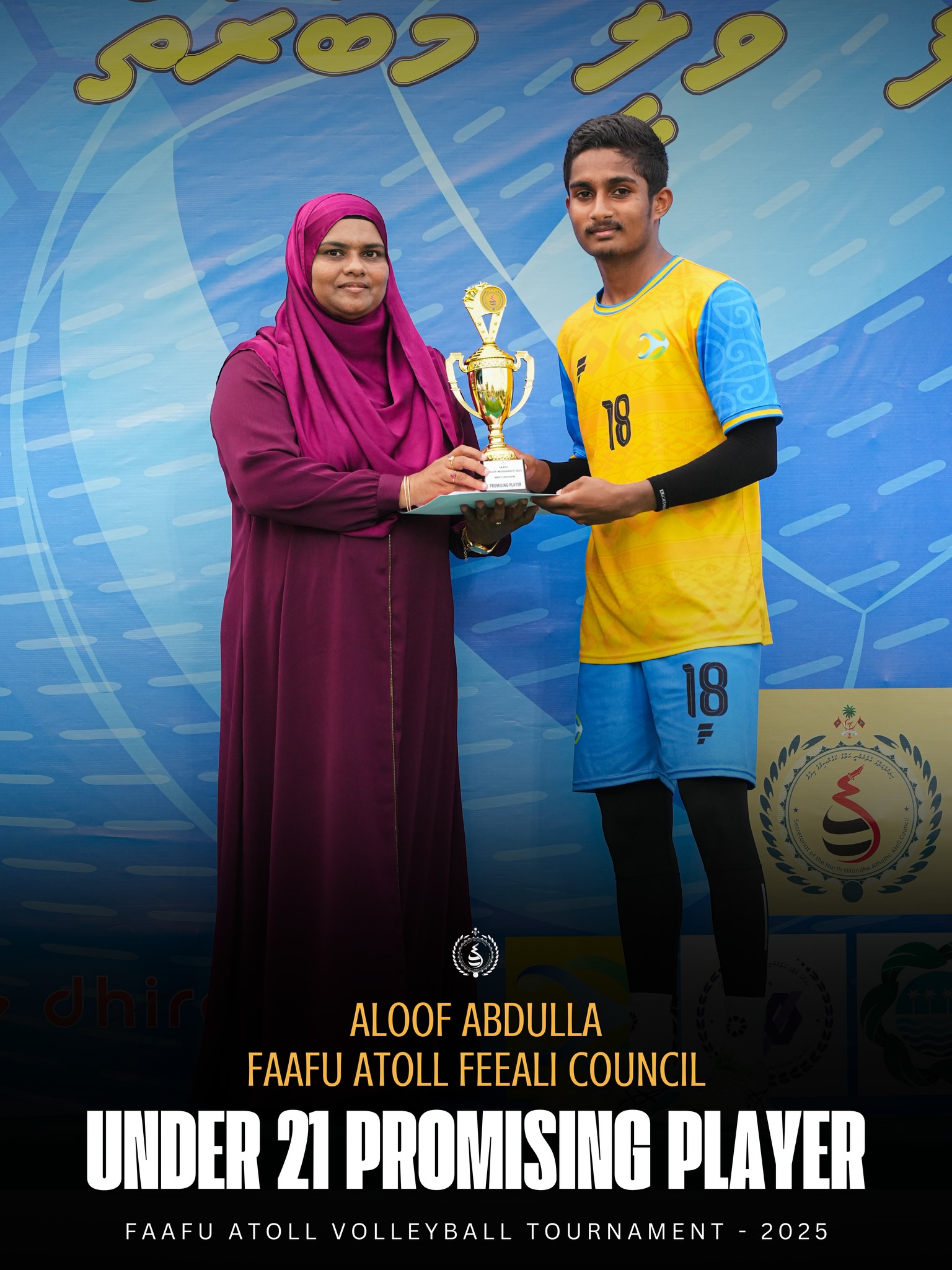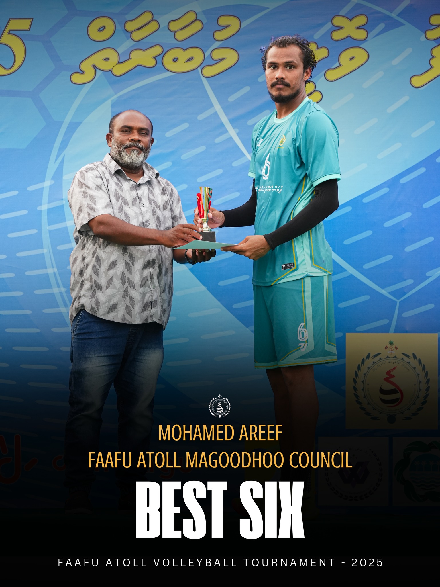 މުބާރާތުގެ މޮޅު ކުޅުންތެރިޔާ އަށާއި، އެންމެ އުންމީދީ ކުޅުންތެރިޔާއަށް ފ. އަތޮޅު ކައުންސިލުން ދޭ ތައްޓާއި ހަނދާނީލިއުން ޙަވާލުކޮށްދެއްވީ ފ. އަތޮޅު ކައުންސިލްގެ ރައީސް ޙައްވާ ޢަބްދުލް ޢަޒީޒެވެ. އެންމެމޮޅު ލިބަރޯ ކުޅުންތެރިޔާ އަށާއި، އެންމެމޮޅު ކޯޗަށް ތައްޓާއި ހަނދާނީ ލިއުން ޙަވާލުކޮށްދެއްވީ ފ. ފީއަލީ ކައުންސިލްގެ މެންބަރު އަޒުހަމް ޢަބްދުﷲ އެވެ.