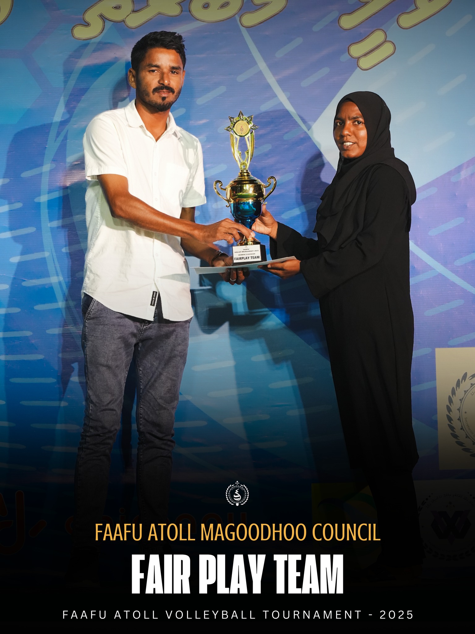 މި މުބާރާތުގެ ފެއާޕްލޭ ޓީމަކަށް ހޮވިފައިވަނީ ފ. މަގޫދޫ ކައުންސިލްގެ ޓީމެވެ. މި ޓީމަށް ފ. އަތޮޅު ކައުންސިލުން ދޭ -/5،000 ރުފިޔާގެ ފައިސާގެ އިނާމާއި ތައްޓާއި ހަނދާނީ ލިއުން ޙަވާލު ކޮށްދެއްވީ ފ. އަތޮޅު ކައުންސިލްގެ މެންބަރު އަރީޙް އިސްމާޢީލެވެ. ފެއާރޕްލޭ ޓީމަށް ފައިސާގެ އިނާމު ދޭންފެށީ މިއަހަރުން ފެށިގެންނެވެ.