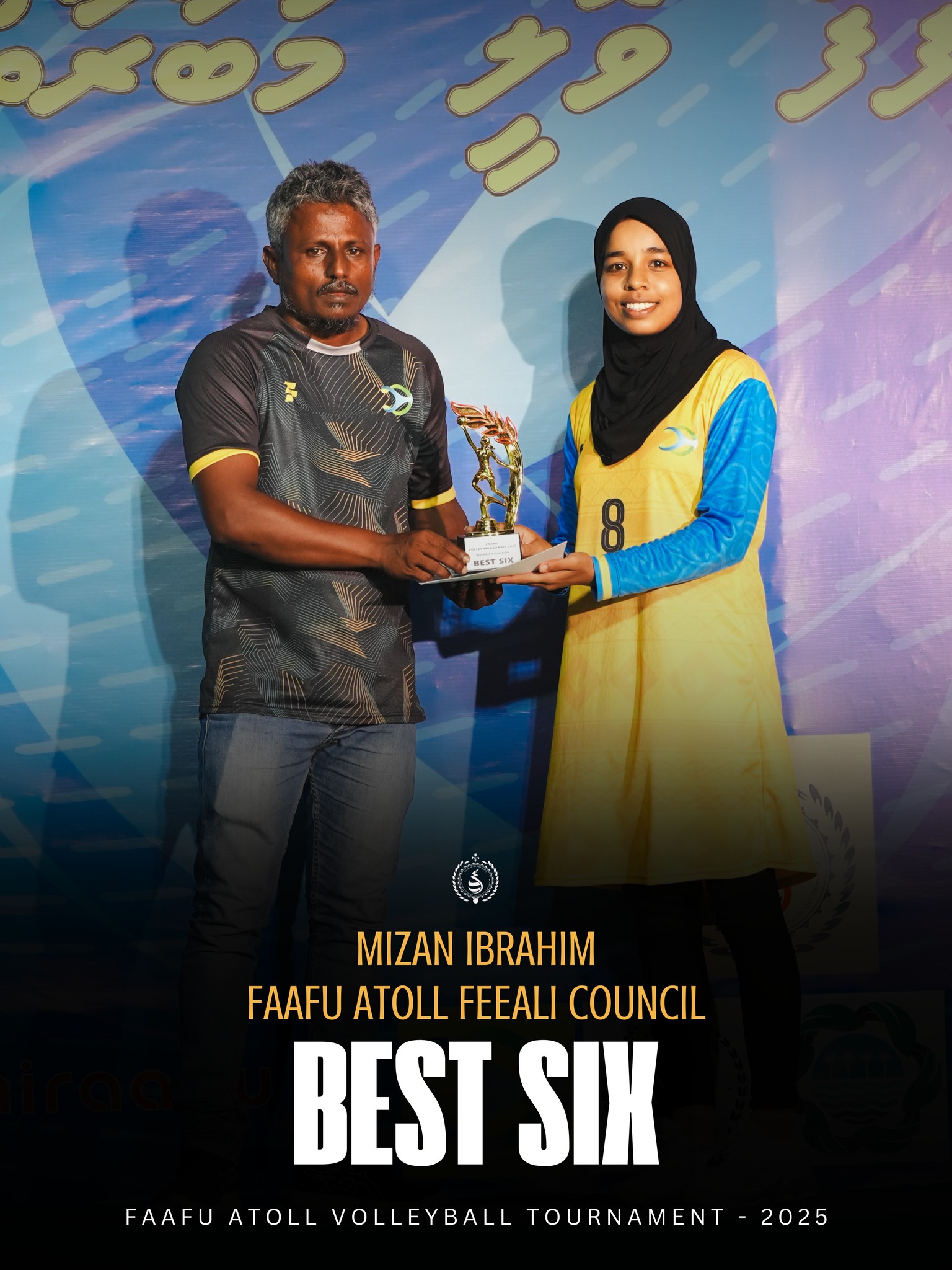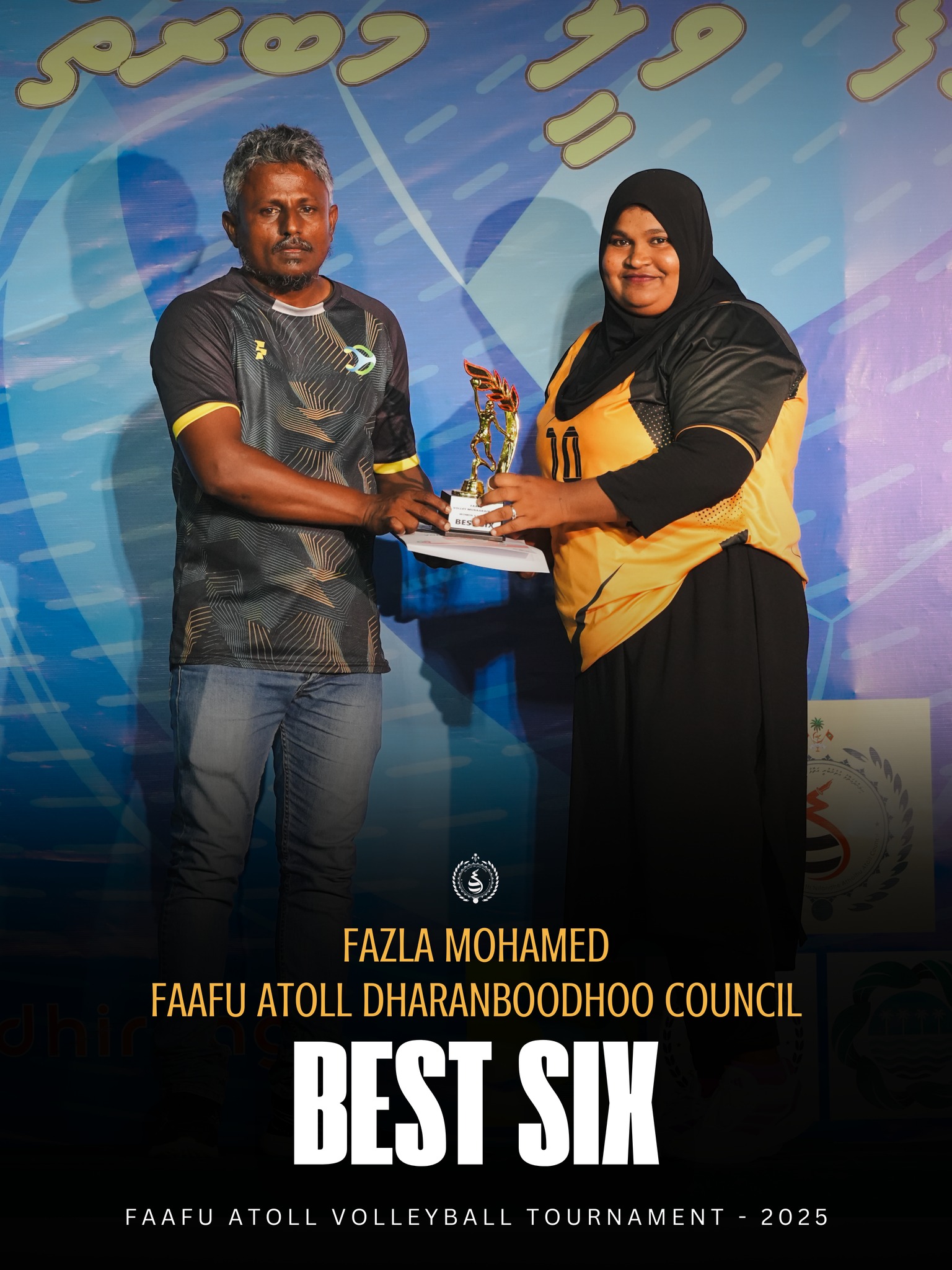 މި މުބާރާތުގެ އަންހެން ޑިވިޜަންގެ އެންމެ މޮޅު ކުޅުންތެރިޔަކަށް ފ. ފީއަލީ ކައުންސިލް ޓީމުގެ ނަރީމާ އިދުރީސް ހޮވުނުއިރު، 21 އަހަރުން ދަށުގެ އެންމެ އުންމީދީ ކުޅުންތެރިޔަކަށް ހޮވިފައިވަނީ ފ. ފީއަލީ ކައުންސިލް ޓީމުގެ ރިވާ ޖަލީލެވެ. އެންމެ މޮޅު ލިބަރޯ ކުޅުންތެރިއަކަށް ފ. މަގޫދޫ ކައުންސިލް ޓީމުގެ އާމިނަތު ފިރާޝާ ހޮވުނުއިރު މިޑިވިޜަންގެ އެންމެ މޮޅު ކޯޗަކަށް ހޮވިފައިވަނީ ފ. ފީއަލީ ކައުންސިލް ޓީމުގެ ކޯޗު އަޙްމަދު އަދީލެވެ.