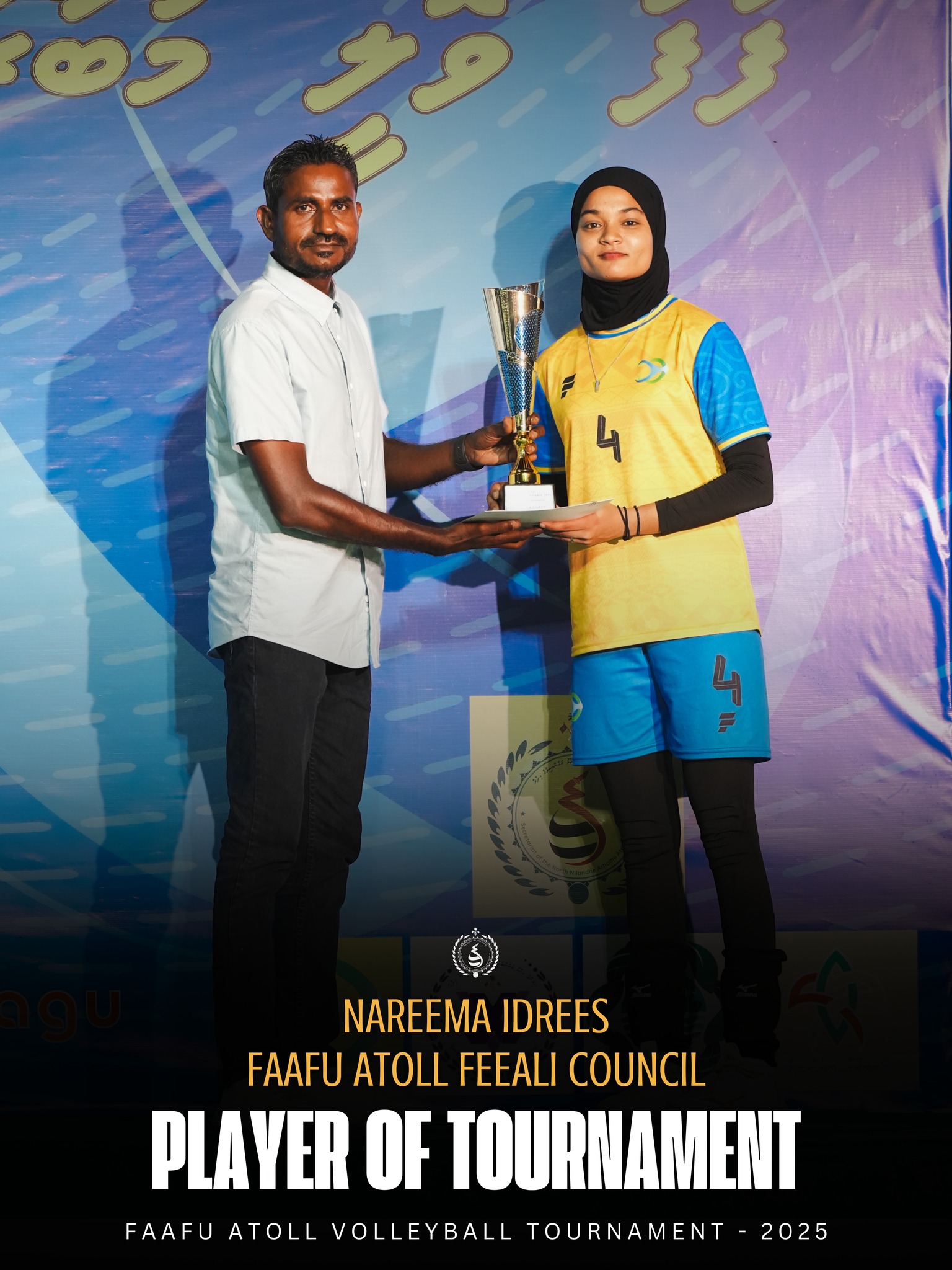 ފައިނަލް މެޗުގެ މޮޅު ކުޅުންތެރިއަކަށް ހޮވިފައިވަނީ ފ. ފީއަލީ ކައުންސިލްގެ ޓީމުގެ ނަރީމާ އިދުރީހެވެ. މި ކުޅުންތެރިޔާއަށް ޓްރޮފީ ޙަވާލުކޮށްދެއްވީ ފ. އަތޮޅު ކައުންސިލް އިދާރާގެ އެސިސްޓެންޓް ކައުންސިލް އެގްޒެކެޓިވް އަޙްމަދު ރަފީޢުއެވެ.