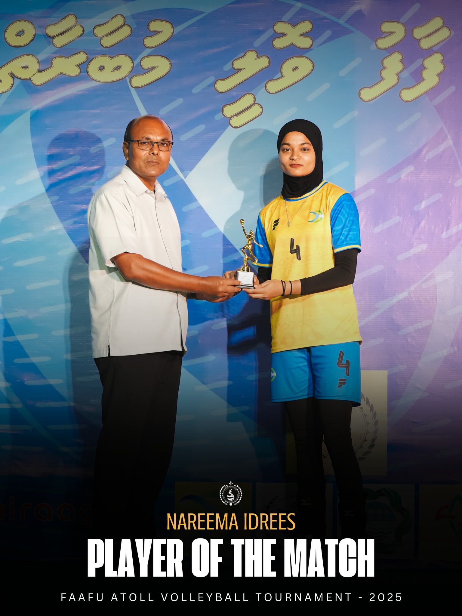 ފައިނަލް މެޗުގެ މޮޅު ކުޅުންތެރިއަކަށް ހޮވިފައިވަނީ ފ. ފީއަލީ ކައުންސިލްގެ ޓީމުގެ ނަރީމާ އިދުރީހެވެ. މި ކުޅުންތެރިޔާއަށް ޓްރޮފީ ޙަވާލުކޮށްދެއްވީ ފ. އަތޮޅު ކައުންސިލް އިދާރާގެ އެސިސްޓެންޓް ކައުންސިލް އެގްޒެކެޓިވް އަޙްމަދު ރަފީޢުއެވެ.