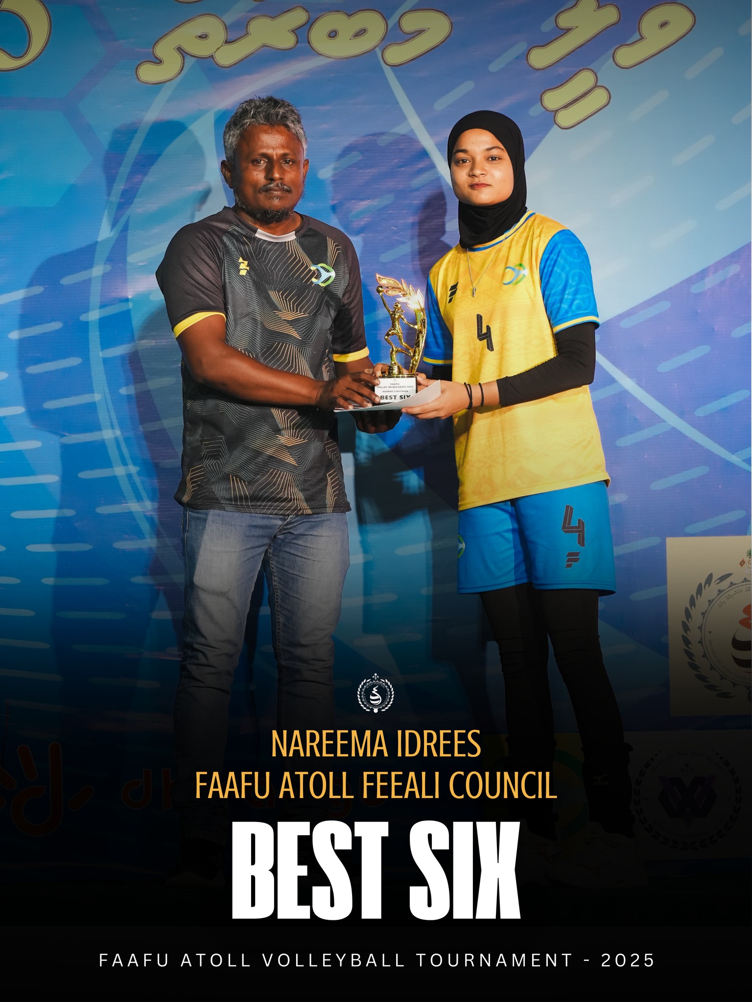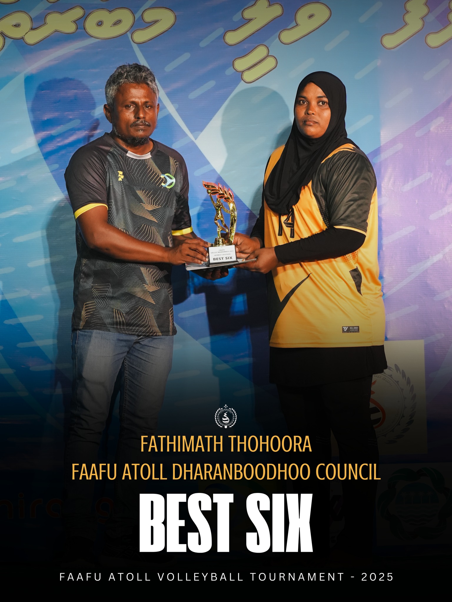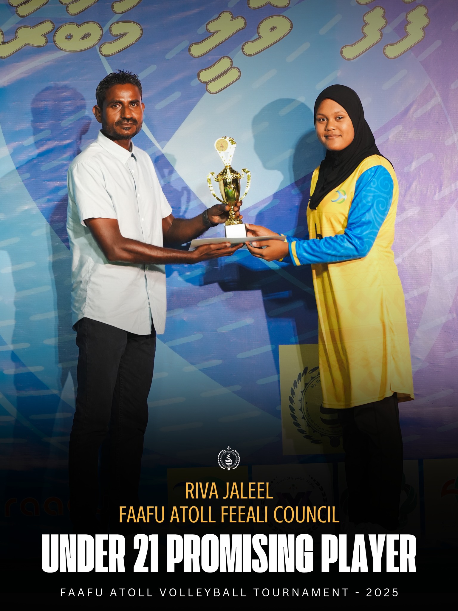 މި މުބާރާތުގެ އަންހެން ޑިވިޜަންގެ އެންމެ މޮޅު ކުޅުންތެރިޔަކަށް ފ. ފީއަލީ ކައުންސިލް ޓީމުގެ ނަރީމާ އިދުރީސް ހޮވުނުއިރު، 21 އަހަރުން ދަށުގެ އެންމެ އުންމީދީ ކުޅުންތެރިޔަކަށް ހޮވިފައިވަނީ ފ. ފީއަލީ ކައުންސިލް ޓީމުގެ ރިވާ ޖަލީލެވެ. އެންމެ މޮޅު ލިބަރޯ ކުޅުންތެރިއަކަށް ފ. މަގޫދޫ ކައުންސިލް ޓީމުގެ އާމިނަތު ފިރާޝާ ހޮވުނުއިރު މިޑިވިޜަންގެ އެންމެ މޮޅު ކޯޗަކަށް ހޮވިފައިވަނީ ފ. ފީއަލީ ކައުންސިލް ޓީމުގެ ކޯޗު އަޙްމަދު އަދީލެވެ.
